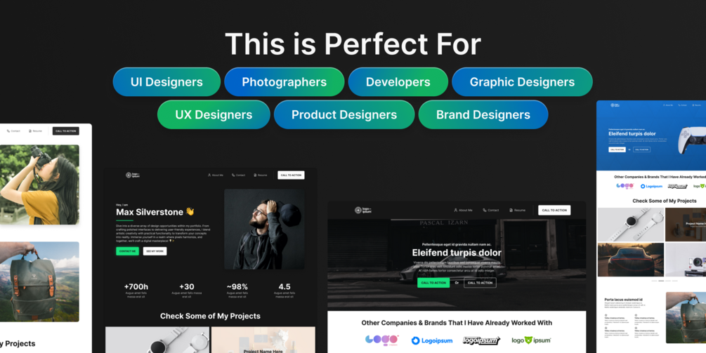 Accelerate your next portfolio site project or create your own with these beautifully designed sections that enchant anyone who sees them. This Essentials UI Portfolio Kit contains the basic kit to get started designing your next portfolio gig, designed to provide you with a solid foundation and an aesthetically pleasing site to start with. What are you waiting for to get ahead of the competition and launch a good-looking and well-built portfolio in a matter of hours only?