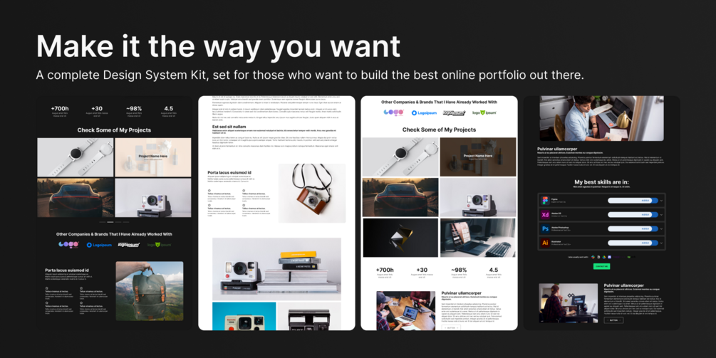 Starting and designing a portfolio from scratch can be really painful. That is why this innovative design makes it easier for those who are not experienced with designing to build their first portfolio. Our drag-and-drop sections make the process straightforward, and if any specific section or component is not to your taste, simply adjust it on the main parent to apply the changes across all your projects!